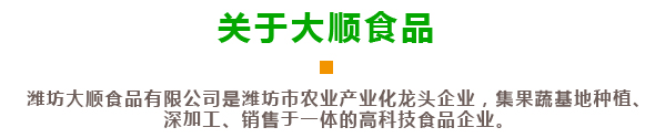 潍坊大顺食品有限公司创建于2006年10月,位于中国出口蔬菜基地安丘市。地理位置优越,距离青岛港100公里,是潍坊市农业产业化龙头企业,2022年被授予国家级高新技术企业,2024年被授予省“专精特新中小企业”。公司通过了欧盟BRC质量体系认证,ISO9000认证,清真HALAL认证。公司占地面积26680㎡,员工190人,主要制造、销售VF果蔬脆片、FD冻干果蔬、香菇素牛肉、黑蒜等产品,年产能6000吨,创汇1000万美元!